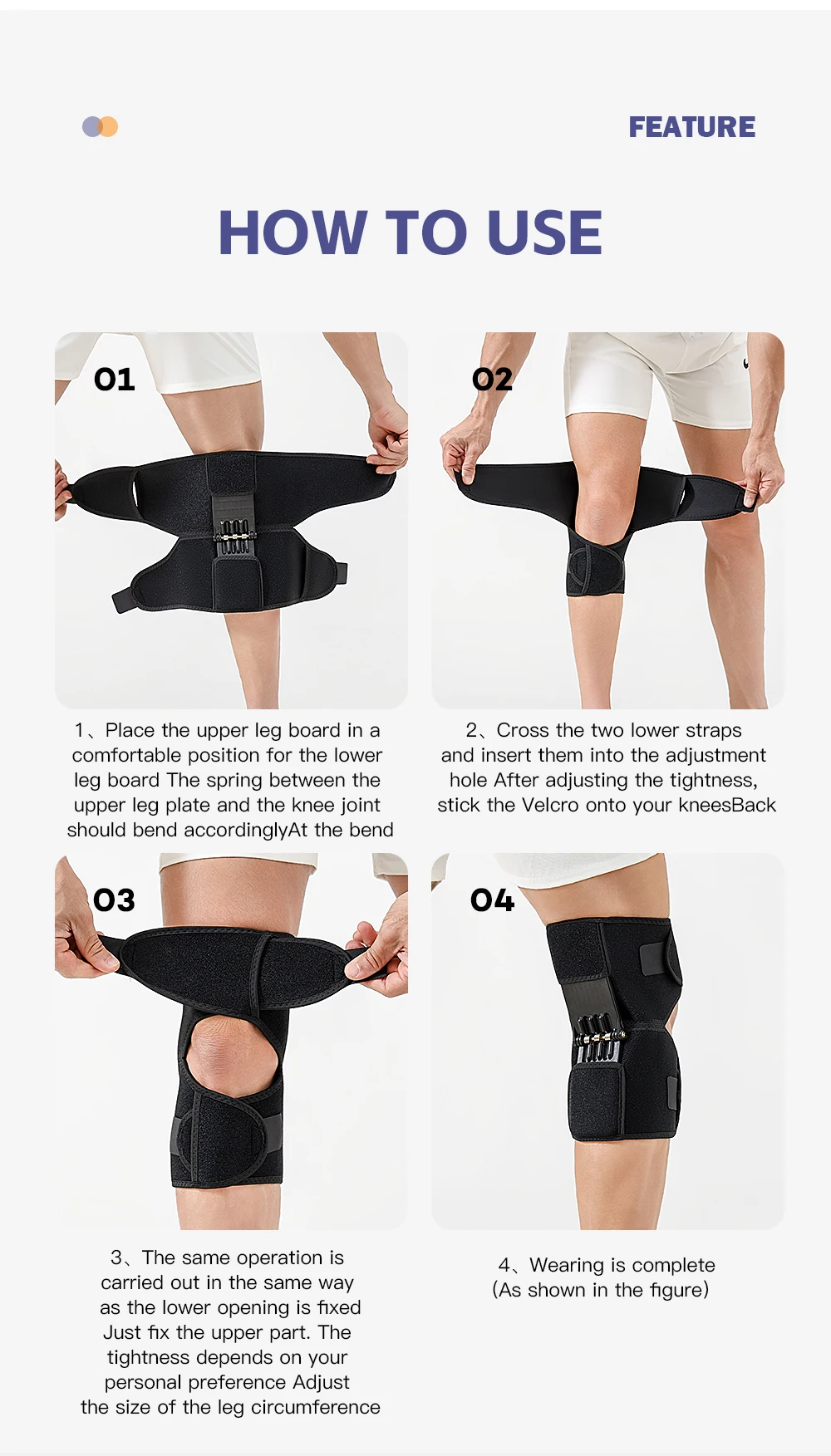 1PC Joint Support Knee Pad Non-slip Lift Pain Relief For Knee Power Spring Force Stabilizer Knee Booster Working Sports Elder